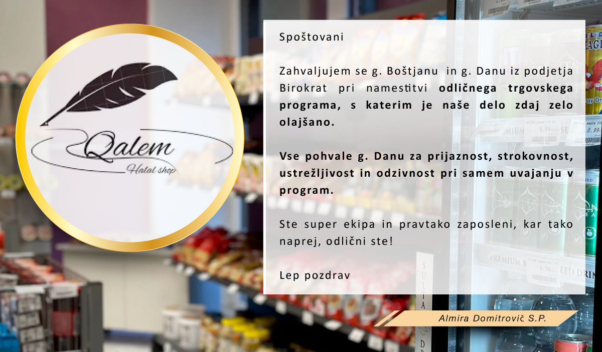 Birokrat je enostaven program s široko paleto funkcij. Davčna blagajna nam deluje brezhibno, celoten program pa je pregleden in zanesljiv za uporabnika, katerega redno posodabljate in nam olajšujete delo. Že od samega začetka ste odzivni, prijazni ter nam nudite podporo.