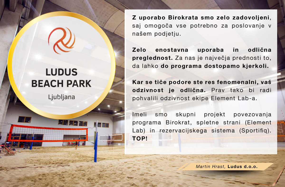 Program Birokrat uporabljamo že od leta 1999. Je enostaven za uporabo in zagotavlja izvrstno podporo operaterjev, ki se po potrebi priključijo on line na program in pomagajo v kratkem času rešiti morebitno težavo. Z istim programom vodimo računovodstvo našega neprofitnega Zavoda ŠKL, kot tudi dveh športnih zvez in neprofitne Fundacije. S programom smo si tudi kar za 3 x pocenili stroške knjigovodstva, saj nam ga sedaj vodijo on line v knjigovodskem servisu, ki tudi uporablja program Birokrat in ni več potrebno, da imamo zaposlenega svojega knjigovodjo.