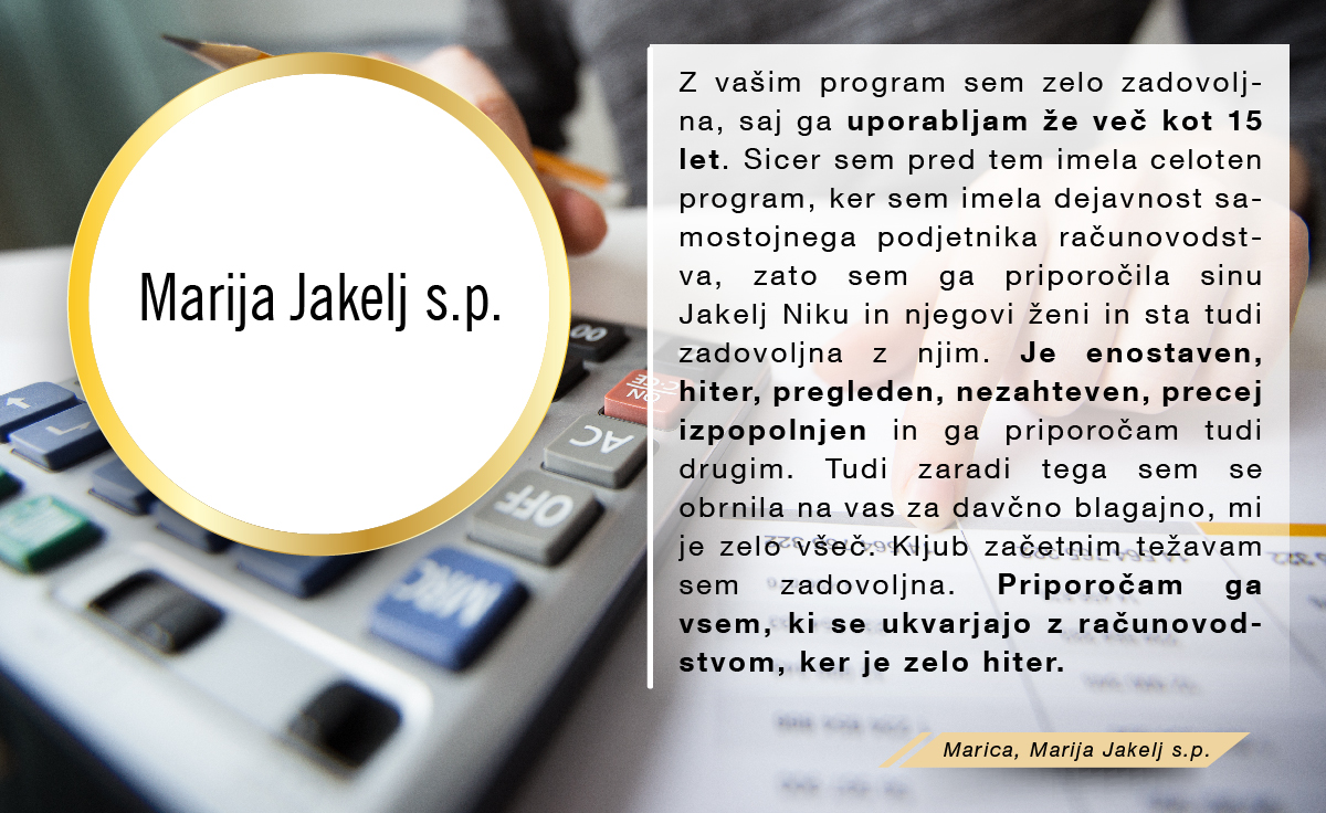 S programom smo zadovoljni, saj ga uporabljamo že od leta 2000 naprej.
