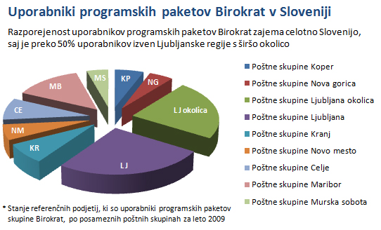 Grafični prikaz programskih paketov Birokrat po Sloveniji