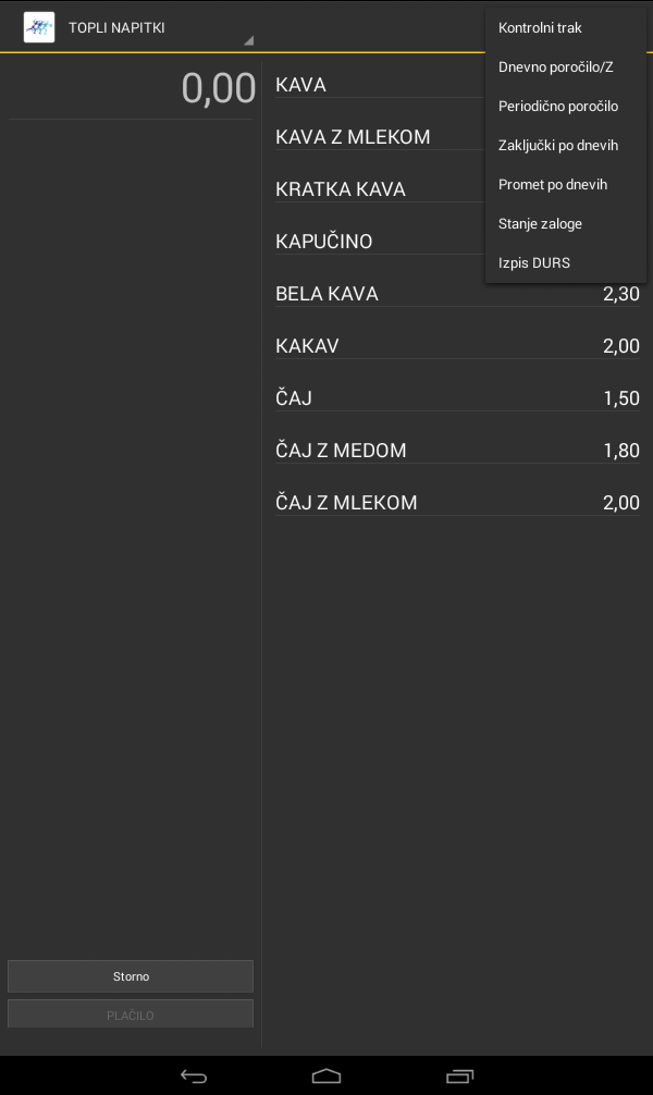 - Tihi zaključek blagajne (Z obračun se ne prikaže in ne izpiše z namenom preprečevanja goljufanja);