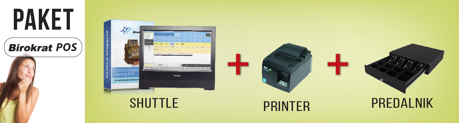 Po novem vam nudimo najem programa Birokrat in vse tehnične opreme (računalnik, shuttle, tiskalnik, predalnik, tablica...), ki jo potrebujete pri vašem poslovanju, različnih blagovnih znamk.