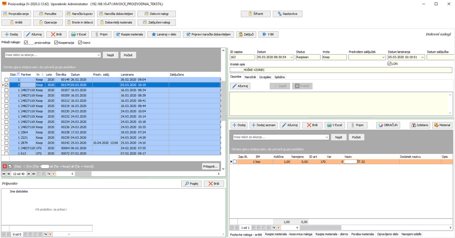 • izdelava in tiskanje delovnih nalogov
