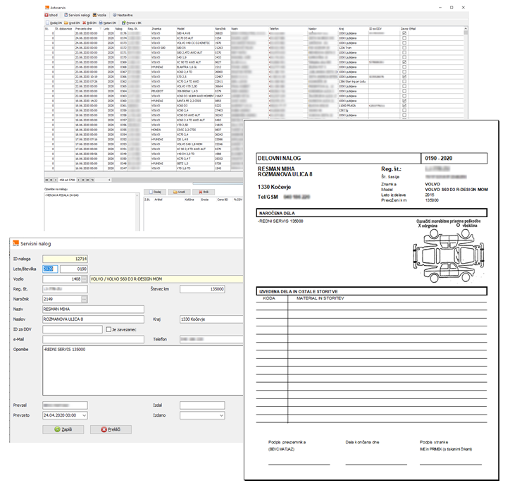Program omogoča pregledno vodenje delovnih nalogov za servisno dejavnost vozil.
